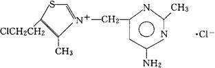 | 释义 | 贝氯硫胺 C12H16Cl2N4S=319.25 CAS-13471-78-8 3-[(4-氨基-2-甲基-5-嘧啶基)甲基]-5-(2-氯乙基)-4-甲基噻唑鎓氯化物。 3-[(4-Amino-2-methyl-5-pyrimidinyl)methyl]-5-(2-chloroethyl)-4-methylthiazolium chloride. 5-氯乙基硫胺。 5-Chloroethylthiamine. Beclotiamine,Chlorothiamine,Cocciden,Clothiamine. INN,USAN,MI.