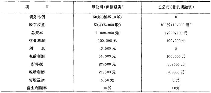| 释义 | 财务杠杆的正方向作用 财务杠杆的正方向作用是指在其它条件不变的情况下,负债融资(运用财务杠杆)的企业每股盈余超过非负债融资(非运用财务杠杆)的企业。 举例:甲乙两家股份有限公司的资本结构及每股盈余如表所示: