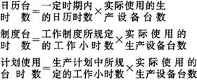 (2)分析生产设备在工作时间方面利用情况。其计算公式是: