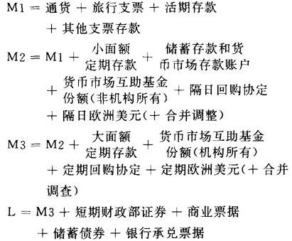 “合并调整”这是为防止双重计算所作的调整,例如,M2合并调整中减去了由货币市场互助基金持有的短期回购协议(这已经被包括在货币市场互助基金的余额之中了)。而国际货币组织的货币总量则划分为“货币”与“准货币”两个层次。 |