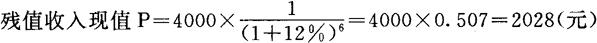 式中,P为复利现值,F为将来值,i和n的含义同前。 例:某项固定资产投资,预计6年后可取得残值收入4,000元。贴现率为12%。其残值收入现值为: