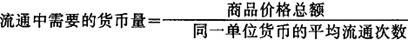 决定一定时期内商品流通过程中货币需要量的规律。 商品流通过程中所需要的货币量取决于三个因素:(1)流通中的商品总量;(2)商品的价格水平;(3)货币流通速度即周转次数。前两个因素的乘积为商品的价格总额。流通中需要的货币量,与商品价格总额成正比,与货币流通速度成反比。其公式为:  货币的职能不仅有流通手段,还有支付手段。商品经济和信用手段的发展,许多交易采取赊欠方式,还有借款、还款、支付工资、缴纳税款,以及债务的相互抵销等,因此上述公式得有所补充。公式应为:流通中所需要的货币量等于商品价格总额减去赊销商品价格总额加上到期支付总额再减去相互抵销的支付总额与同一单位货币作为流通手段和支付手段的平均流通次数的比值。 在纸币流通条件下,流通中的全部纸币所代表的价值量决定于流通中的货币需要量,这是货币流通规律的特殊表现形式。如果纸币发行量超过货币需要量,就会出现货币贬值、通货膨胀。 |