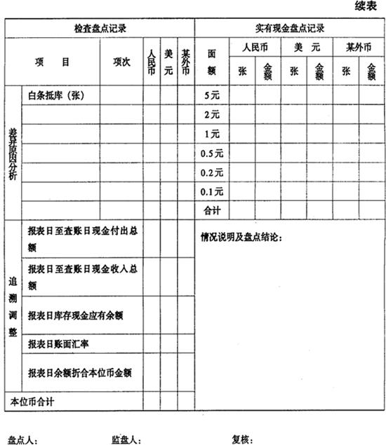 | 释义 | 货币资金的主要凭证及其传递程序 1.现金盘点表 企业应定期组织库存现金的盘点,通常包括对已收到但未存入银行的现金、零用金、找换金等的盘点。盘点库存现金的步骤和方法有: (1)在进行现金盘点前,应由出纳员将现金集中起来存入保险柜。必要时可加以封存,然后由出纳员把已办妥现金收付手续的收付款凭证登入现金日记账,如企业现金存放部门有两处或两处以上者,应同时进行盘点; (2)由出纳员根据现金日记账进行加计累计数额结出现金结余额。 (3)盘点保险柜的现金实存数,同时编制“库存现金盘点表”,分币种面值列示盘点金额; (4)资产负债表日后进行盘点时,应调整至资产负债表日的金额; (5)盘点金额与现金日记账余额进行核对,如有差异,应查明原因,并作出记录或适当调整。 若有冲抵库存现金的借条、未提现支票、未作报销的原始凭证,应将“库存现金盘点表”中注明或作出必要的调整。 2.银行对账单 银行对账单为各开户银行于月底寄送的表明企业该银行账户存款和取款明细资料的文件,是企业进行银行账簿核对的有效支持性文件。企业应将银行对账单的余额与企业银行账簿的金额进行核对,编制银行存款余额调节表。 表4-11 库存现金盘点表