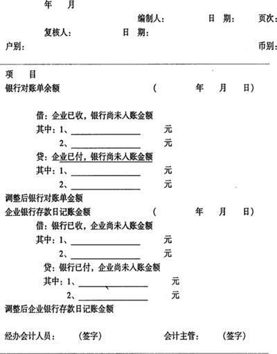 3.银行存款余额调节表 企业应于每月月末根据银行对账单和企业银行账簿编制银行存款余额调节表,银行存款余额调节表的格式如表3-12所示: 表4-12 银行存款余额调节表