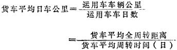 货车日车公里是反映货车车辆在时间利用方面运用效率的指标。在空率和装载量一定的情况下,货车日车公里愈大,货车车辆每日所完成的货物吨公里就愈多,货车运用效率就愈好。提高货车日车公里的主要途径在于提高旅行速度,缩短货车中转作业时间和货物作业时间。