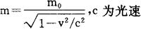 可见,当v接近光速C时,m迅速增加,远离光速时,近似等于静止质量(惯性质量)。这里揭示了物质和运动的不可分割性,运动质量的出现,也是相对论的效应之一。 质量守恒在化学反应中和在原子核反应中体现在各种物质之间的相互转变性质,由于物质质量是对物质的定量数值描述,那么这种转变在物理意义上总的数值是不变的。 相对论也发现质量同能量有共同的属性,二者可以互相转化,这主要体现在相对论的质能关系式上,物质运动动量为P,质量为m0(静止质量), E2=C2P2+ 揭示了质量和能量的同一属性。 因此质量守恒及转化定律,实际也是能量守恒及转化定律,越是在高速度运动,这种同一性越明显。 它揭示了质量是物质能量的一种储存形式。 当P=0,E=m02c2,而原子核反应中质量亏损即是质量转变为能量的能量守恒定律具体形式。 |