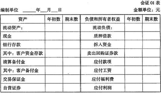 | 释义 | 资产负债表的编制 (一)资产负债表的格式 资产负债表的格式一般为账户式,即资产负债表分为左方和右方,左方列示资产各项目,右方列示负债和所有者权益各项目,左方合计数等于右方合计数。通过账户式资产负债表可以反映资产、负债和所有者权益之间的内在关系,使资产与负债和所有者权益之间的恒等关系一目了然。证券分司资产负债表的一般格式如表3-4-13所示。 表3-4-13 资产负债表