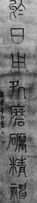 【赏析】: 我国文字是由象形发展而来的,小篆与大篆相比,线条更趋简化,形体也由放纵多变渐而趋于整齐匀整。董邦达的小篆,结体不像斯、冰之修长而略取横势,有的几于方正。但作者摈弃了唐以来小篆刻意引笔下悬,以求“悬针”、“垂露”之名,而代以方正匀称之结体。用笔皆以枯笔乾拉,但使转流畅不滞,匀圆遒劲,确乎“画如铁石,体若飞动”,笔势瘦劲俊逸,形态典雅宽舒。如“体”字,左边“骨”下“月”字与右边“豆”上“ ”,皆极灵致。若绝若连,近似小露缘丝,远像鸿鹄群游,络绎迂延。“豆”之略实托住上“ ”,“月”极虚仍苍劲而力不绝,一实一虚,一虚一实,体尽其妙。上字也极朴厚,结构上只二横一竪,无曲屈忸怩之态。笔简而字未简,反觉其于敦厚的用笔及结构中,显现出作者力追古人的精神。 通篇形态肃穆,笔致流畅,遒劲圆匀,敦厚雍容。书法达到这种精神境界,即使在有淸四百年的大书法家中也不多见。 |