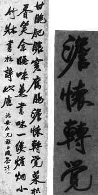 【简介】: 现代·刘咸荥书。纸本。行书。凡三行,每行字数不一,共四十六字。刊于《民国时期书法》(下)。 【赏析】: 人们在欣赏书法时往往有书家字、画家字、文人字之说。所谓书家字,称其法度谨严,画家字则赏其画意,文人字乃誉其深味。观豫波先生此幅自书诗,窃意以爲三者兼而有之。论书法,墨腴笔健,挥洒风流,淹有黄(庭坚)赵(孟頫)之长。他善画兰石,常以写兰之法入书,舒展挺秀,摇曳多姿,当地人有“兰叶体”之誉。他还是一位才华出衆的诗人,胸襟洒落,爲人和易,恬淡自处。这些属于人格的东西都在字幅的气静神怡之中得到了充分的表现:一点不做作、不矜才使气,大大方方、随随便便、朴朴实实的。 豫波有这样一个故事:他的学生李天根曾办《国民日报》,不堪赔累,将要停刊,往请豫波代爲筹措。他在略加思索后提出,凡是订阅全年《国民日报》者,由他写字或作画一幅相赠。消息传出,订户猛增,遂使《国民日报》没有停刊。由此可见人们对豫波书画敬重之一斑。  |