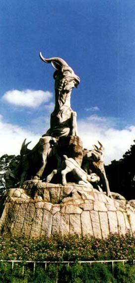 越秀公园位于广州市区北部、广州火车站东南约一公里处,是全市最大的公园,面积达92万平方米。除越秀山外,还包括周围的6个小山岗及东秀湖、南秀湖等3个人工湖。 越秀山亦就是越秀公园。为白云山余脉,东西绵延1公里多,海拔70余米。汉初南越王赵佗曾于山上建越王台,故又称越王山。明称观音山。“越秀连峰”居羊城八景之首,一向是广州游览胜地。参观景点有五羊石像、镇海楼、中山纪念碑等。 五羊山位于越秀公园西部。因山岗上塑有五羊石像得名。五羊传说颇多。清初屈大均《广东新语》载述尤详:“周夷王时,南海有五仙人衣各一色,所骑羊亦各一色,来集楚庭。各以谷穗一茎六出,留与州人,且祝曰:‘愿此阛阛,永无饥荒。’言毕,腾空而去,羊化为石。今坡山有五仙观,祀五仙人”,“晋吴修为广州刺史未至州,有五仙人骑五色羊负五谷米来,止州厅上。其后,州厅梁上图画以为瑞,号广州曰五仙城”。仙人已乘白云去,此地空余五羊山 广州人民为感激五位仙人,在他们当年降临的地方修建了一座“五仙观”。五仙观几经搬迁,现坐落于惠福西路,是明代所建。今广州简称穗,别称穗城、羊城、仙城、楚庭,皆因五羊故事而得。 五羊石像现是广州市标志。走进越秀公园西部,登上木壳岗,便会看到五只石羊神态各异:站在高处的老羊雄劲,口衔谷穗,昂首向前方,老羊脚下是一对亲密依偎的小羊,再有一对母子羊,母羊左右回首顾盼正在安静吸乳的幼羊,深厚母爱溢于言表。五羊石雕像已作为广州城徽。