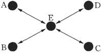 | 释义 | 轴型沟通 小群体信息交流模型。 其形态如图。美国心理学家莱维特在五人群体双向交流实验中发现。认为处于中心位置的E拥有独占沟通渠道的特权,很可能是群体的领导人或核心人物。其他人员A、B、C、D由于相互间的沟通受到限制,满足感较低。传递信息的速度较快,能提高简单工作的效率,对于复杂难办的工作,成效不高。