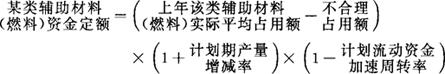 如果辅助材料资金占用额的增减受产量变动的影响不大,计算时可以不考虑产量增减率。 用比例计算法计算的公式如下:
