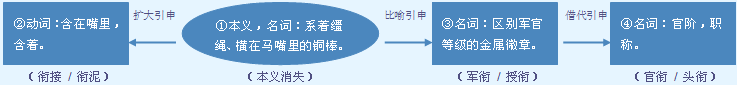 衔,篆文=(行,前进)+(金,铜棒),造字本义:为了控制马匹的行进,横在马嘴里、两端系着缰绳的小铜棒。