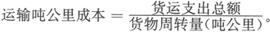 式中“货运支出总额”包括应全部直接列入和分配列入的货运支出。“运输周转量”是根据货物重量与实际被运送的里程计算的。运输吨公里成本是考核运输企业经济效益的指标之一,也是制订货物运价的基本依据。 |