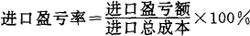上式中进口盈亏额=进口销售收入一进口总成本。计算结果正数为盈余,负数为亏损。进口销售收入按国家规定,应分别不同商品计算折合成人民币。