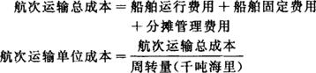 远洋船舶按照航次命令载运货物、旅客完成一个完整的运输过程所发生的船舶运输费用。其计算公式为:
