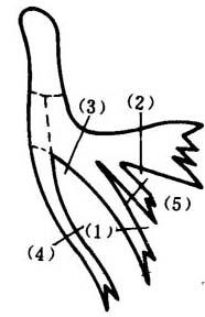 束支传导阻滞的一种分类方法,即根据阻滞部位和心电图表现的不同,将其分为近端阻滞与远端阻滞两类。远端阻滞部位的类型可有如下情况(见图):(1)左前分支传导阻滞;(2)左后分支传导阻滞;(3)左束支传导阻滞;(4)右束支传导阻滞;(5)左间隔支传导阻滞;(6)右束支传导阻滞+左前分支传导阻滞;(7)右束支传导阻滞+左后分支传导阻滞;(8)不完全性左束支传导阻滞+左前分支传导阻滞;(9)不完全性左束支传导阻滞+左后分支传导阻滞;(10)右束支传导阻滞与左束支主干阻滞(可产生三度房室传导阻滞图形);(11)三束支传导阻滞,即左前分支传导阻滞+左后分支传导阻滞十右束支传导阻滞。  束支远端阻滞部位类型 |