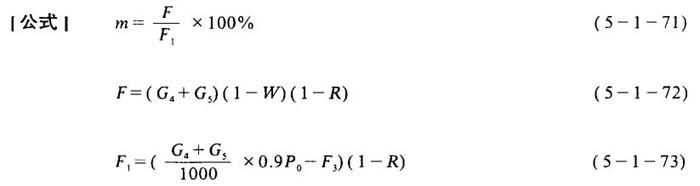 式中 m——造纸纤维收获率(%) F——成纸含绝干纤维的总量(kg) F1——相应耗用纸浆的绝干纤维总量(kg) G4——成品量(合格品量)(kg) G5——不合格品量(kg) W——成纸水分(%) R——填、胶料含量(%) P0——单位用浆量(浆耗)(kg浆/t纸) F3——损纸和废品的绝干纤维量(kg)该部分纤维没有用于成纸,而是回用为纸浆 |