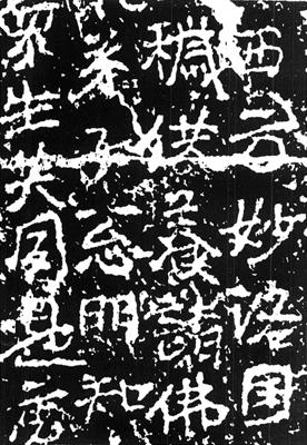 【简介】: 全称《沙弥道荣造像》。北齐天保二年(551)四月刻。正书。九行,前四行行二字;后五行行十字。在河南巩县石窟寺。《中国书法大辞典》著录。 【赏析】:   《道荣造像记》体势纯任自然,用笔中含而劲直,质朴古拙而又意气纵横,在参差不齐的结体和顚僕欹斜的醉态中,寄寓了游戯风尘的喜悦和凄怆、坚韧和豪放、自信和希望,深得书法艺术“大”、“重”、“拙”气象的三昧。北朝佛敎中的“悲惨世界”和战乱的阴影在这裏已不复存在,它只有作者对人生的独到理解:笑傲尘世的脱俗、血肉丰满的人性与奋发进取的力量。《道荣造像记》是北朝书法中难得的佳品之一。 |
