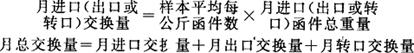 指邮电部门在一定时期内完成的信息交换的数量。 它分为出口、进口和转口交换量。出口交换量是在收寄局、发报局和长途电话发话局;进口交换量是在投递局和长途电话受话局;转口交换量是在中间经转局。出口、进口和转口交换量都是邮电局、所为社会提供通信服务的有效成果,它是统计整个邮电部门业务总量的基础。各种业务交换量原则上都按实点数进行计算。 对于无据可查、量又很大、点数困难的平常函件,通常用称重折算法或比例推算法进行计算。 (1)称重折算法。 是将出口、进口和转口函件每天分别进行称重登记,得到全月总重量,然后从中随机抽取5公斤(或5公斤以上)为样本清点函件数,求出平均每公斤函件数,再以此分别乘以全月出、进、转口函件的总重量即得出相应的邮电交换量。其计算公式如下:  (2)比例推算法。是抽取5天(或5天以上)的全部进、出、转口的函件作为样本,计算三者的比例;然后,每月只需实点函件的出口交换量,就可以根据样本确定的比例推算出全月的进口、转口交换量。 |