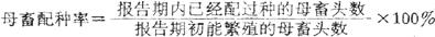 式中分子是指全部已交配的母畜头数,包括自然交配和人工受精的母畜。 在同一配种期内如果采取多次交配的母畜,只计算一个头次。 |