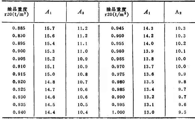 式中:tb——蒸汽饱和温度,℃; ty——油品平均温度、℃,按公式(6)计算; d——加热器管子的外径、m; V——油品平均温度和蒸汽温度的算术平均温度 A1,A2——系数。可从表14-2-74查得。 表14-2-74