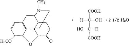 C18H21NO3·C4H6O6·21/2H2O=494.50 CAS-34195-34-1 CAS-143-71-5(无水) 4,5α-环氧-3-甲氧-17-甲基吗啡喃-6-酮洒石酸盐(1∶1),水合物(2∶5)。 4,5α-Epoxy-3-methoxy-17-methylmorphinan-6-onetartrate(1∶1),hydrate(2∶5).镇咳药。 Dicodid,Calmodid,Dicodrine,Hydrocodone Bitartrats.Mercodinone,Codinovo,Orthoxycor,Norgan. USAN,MI.  |