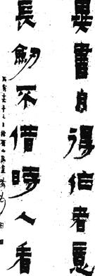 此联书法多用方笔,横粗竖细,结体茂密,体势端正。现藏于吉林省博物馆。文物出版社曾影印。