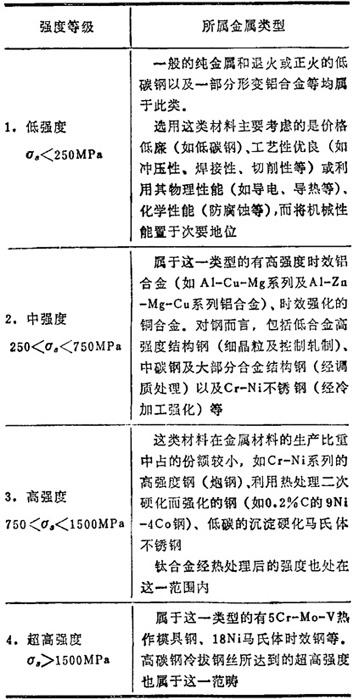 通常将金属材料的强度分为4个等级,见表2.4-5。
