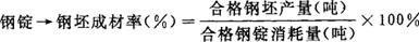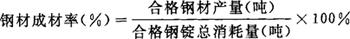 | 释义 | 钢材成材率 指报告期内轧(锻)钢生产的合格钢材产量占其合格钢锭(或钢坯)总消耗量的比重,用百分数表示。 它是反映钢材生产过程中金属料的全部消耗情况和工作质量情况的一个指标。其计算公式为: