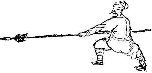 | 释义 | 铁翻竿势 传统枪术动作。 “乃外把门黄龙点竿枪法,一截二进蛇弄风,扑著鹌鹑不放松。”(明戚继光《纪效新书》卷十)清吴殳《手臂录》卷二记为:“铁幡竿,马家老法,枪著腰肚,以硬横刀开之,笨法也,即短枪之白蛇弄风耳。”此法即现在的扫枪,使枪接近地面平摆,截开来械后,再反攻。