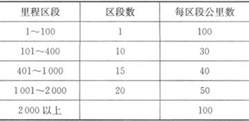 在货物运价率表上运输里程不是按每公里列载的,而是划分若干区段,每个里程区段采用一个相同运价率。铁路现行运价里程区段划分,如下表所示。