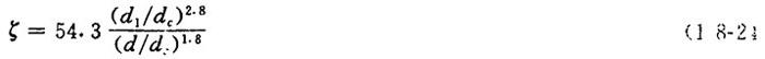 ζ——阻力系数,对圆柱体部分直径为75mm和150mm的锥形除砂器,可由下式求得: