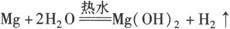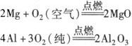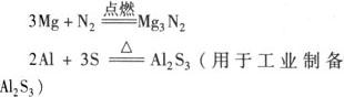 1.与O2反应: (1)常温下,Mg、Al均能与空气中的O2反应,生成一层坚固而致密的氧化物保护膜,所以金属镁和铝都有抗腐蚀性能. (2)燃烧:  注 镁在空气中用酒精灯火焰点燃即可燃烧,而铝在空气中需高温点燃才能燃烧.这是由金属性Mg>Al所决定的,也是说明金属性Mg>Al的实例之一. 2.镁、铝除能跟氧气反应外,还能跟其他非金属如硫、卤素等起反应  3.与酸反应 (1)与非氧化性酸反应: 如:Mg+2H+=Mg2++H2/p> 2Al+6H↑(+ =2Al3++3H2/p> (2)与氧化性酸反应: 如:4Mg+10HNO↓(3 (极稀)=4Mg(NO3)2+N2O5H↓(2O 铝在冷的浓HNO3、浓H2SO4中因发生钝化而难溶. 4.与碱反应: (1)Mg与碱不反应 (2)Al与强碱溶液: 2Al+2NaOH+2H2O=2NaAlO2+3H2/p> 注 铝与强碱溶液反应机理为: 2Al+6H↓(2 O=2Al(OH)3+3H2/p> Al(OH)↓(3 +NaOH=NaAlO2+2H2O,所以反应中电子转移的表示为:  5.与水反应   6.与氧化物反应:  注 铝热反应可用于焊接大截面金属(如铁轨)和冶炼某些难熔金属(如Mn、Cr等). |