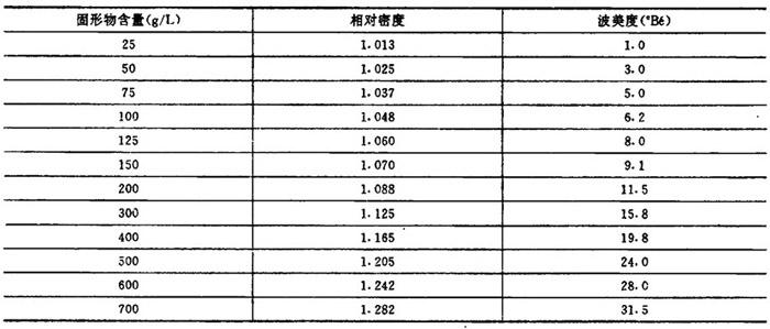 表1-11-2 镁盐红液相对密度、波美度与固形物含量之间的关系