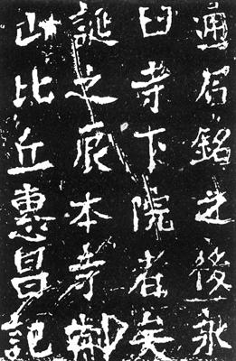 并不是每一块古代石刻的书法都具有较高的艺术水平。 这张《阌县大兴院造像记》的搨片就是如此:书法写得不太精妙,刻工也很差,刀法散乱,不成方圆。又加年代久远,石面风化驳蚀过甚。这些都是有损于碑体书法精神气派的种种原因。 当然这方造像记的书艺也不能算太糟。 除了具有北碑的苍茫淳野气息之外,透过那由马马虎虎的搨手搨出的搨片字口,还可以隐隐约约地显现出字体的肌肤—点画中缓缓流动看温热的血液和储存著一股不可遏止的力量—仿佛是举重力十的肌肤。 再进而观赏字形结体,又可以发现这块刻石的写法也很特殊。 一般北碑和楷书单字惯用的结体方法,是中心部位收紧,四周放纵,即中宫紧束,四肢舒展,因而能展示出一种落落大方的开放性的气度。我们在这裏却看到了一种反其道而行之的结体方法:中宫开放,四边紧密。这种结体方法是优是劣?有何特色?聪明的读者不妨自己来思索一番。 |