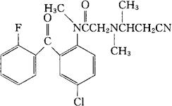C21H21ClFN3O2=401.87 CAS-65899-72-1 4′-氯-2-[(2-氰基-1-甲基乙基)甲氨基]-2′-(邻-氟苯甲酰基)-N-甲基乙酰苯胺。 4′-Chloro-2-[(2-cyano-1-methylethyl)methylamino]-2′-(o-fluorobenzoyl)-N-methylacetanilide. N-[4-氯-2-(2-氯苯甲酰基)苯基]-2-[(2-氰基-1-甲基乙基)甲基氨基]-N-甲基乙酰胺。 N-[4-Chloro-2-(2-fluorobenzoyl)phenyl]-2-[(2-cyano-1-methylethyl)methylamino]-N-methylacetamide. 安定药,中枢神经系统抑制药。 阿罗查酮。 Alozafone,CAS108. INN,USAN.  |