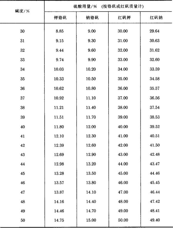 注:表中所列的硫酸纯度为100%,实际应用时应进行纯度换算。