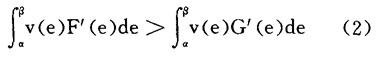 且 F(ei)≠G(ei),对某一个ei 则当v′>0及v″<0时,(1)式必成立。当条件(4)成立时,称#二阶随机占优于 |