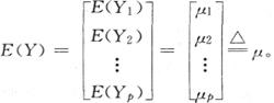 设有随机向量Y′=[Y1,Y2,…,Yp],且各分量的数学期望E(Yi)=μi(i=1,2,…,p),则随机向量Y的均值为