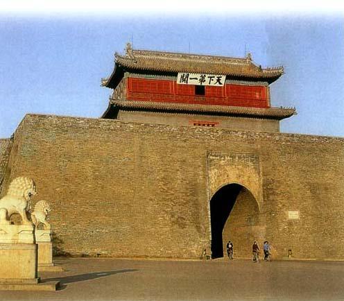 在万里长城的最东端,燕山脚下、渤海之滨的山海相连处,有一座历史文化名城——山海关。山海关距秦皇岛市15公里,建于明朝洪武十四年,因关城东门是“万里长城第一关”而举世闻名,自古以来就吸引著成千上万的游人来此观光览胜。 山海关城北面崇山峻岭,气势雄伟。万里长城从陡峭的角山蜿蜒而下,与关城东墙相接,在老龙头处伸入茫茫渤海之中。北面的群山,东面的大海,蜿蜒的长城,险要的关隘,构成了一套完整的防御体系,这里形势险要,是华北通往东北的重要咽喉,自古以来就是兵家必争之地。在人民安居乐业的和平年代,这些防御工程与山水交相辉映,共同组成了山海关旅游风景名胜区,主要景点有山海关城、天下第一关、老龙头、角山等。 山海关城 山海关城是万里长城东端第一个重要的军事据点,也是至今保存较好的一个,它与居庸关、八达岭、嘉峪关并列为全国重点文物保护单位。山海关城东依长城,是一座由城楼和城墙四面组合起来的关城,周长4500多米,城墙高14米,厚7米,呈正方形,东西南北各有城门一个,城外有一条深25米的护城河。山海关城与附近的长城、城堡城楼、墩台、关隘等共同组成了一个完整的防御工程体系,如今则是供国内外游人参观游览的一座独具特色的古城。 山海关八景 海亭风静 瑞莲捧日 悬崖飞瀑 山寺晴雨 悬洞窥天 琴亭画景 屏峰春盎 姜坟雁阵 天下第一关 天下第一关是山海关城的东城门,原名镇东楼。因为此处是通往关外的大门,地理位置十分重要,所以在建筑布局和结构上更为合理、坚固。门上有箭楼门外有加强防守的瓮城东罗城。整个楼台造型美观大方,雄壮威武,古人曾用“太平时节登临好,暴客临门不用防”的诗句来形容它的险要,赞美它的景致。城楼上层额枋前悬挂著“天下第一关”的匾额,是明代大书法家萧显的手笔,字体苍劲有力。 登上天下第一关城楼,细观古老的箭楼,深灰色的城砖,朱红色的圆柱,五彩缤纷的画梁,整齐划一的红板箭门,栩栩如生的飞檐脊兽,古色古香,雄姿壮丽。南望长城伸入大海,有如苍龙戏水,一跃激起千层浪,北望长城随山起伏,好似巨蟒抬头,一动蜿蜒几千里。骚人墨客来此登临,无不感慨万千。“两京锁钥无双地,万里长城第一关“是军事家的感受,“万顷洪涛观不尽,千寻绝壁画应难”是诗人的情怀。沧桑的历史,雄伟的景观,也一定会使你诗兴大发,长吟短叹。