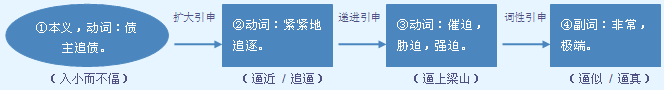 ❶逼迫,给人以威胁;强迫索取。常作带宾、带补谓语。 形势~人|寒气~人|墙角里冲出一个人,用枪~着他|~债|不要~口供|病魔~得他不得不放下手中的笔|这些口供是~出来的|~了三小时,他仍然一个字也未写|船主那把杀人不见血的刀总是~在你的后脖颈上|别把人家~出病来了。 ❷逼近。常作带宾、带补谓语,补语一般是趋向动词。 敌军已~我境|那条军舰一步步~上来了,~到跟前,有些人就跳下水冲渔船游过来了。 【词语】 逼供 逼上梁山 逼视 逼肖 逼仄 逼真