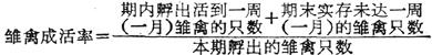 指孵出雏禽只数中成活雏禽只数所占的比重。反映雏禽饲养工作质量的指标。计算公式为:
