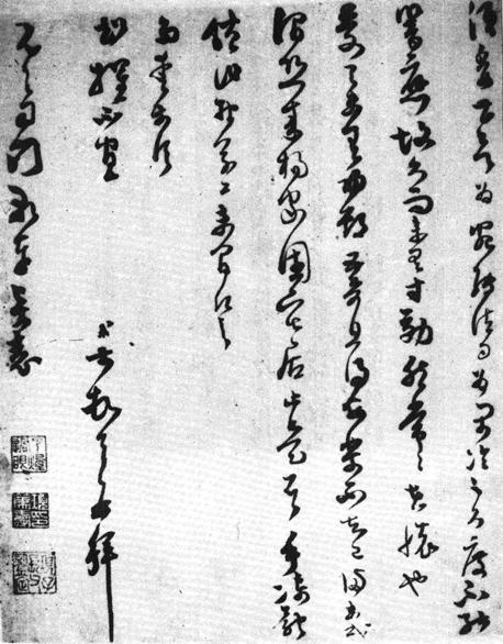 【赏析】: 中国书法眞是妙不可言。那似乎有些单调雷同的点画与结体,一到书家的笔下,便可以出神入化、变态无穷。如果这书家具有足够的艺术才能与功力,就不必担心在艺术风格确立上是否会走投无路的问题。 范成大此帖,艺术个性也足称突出。作爲草书作品,它的第一个突出特徵是行笔的流利酣畅,不但数字连缀者较多(最多者八字连绵不断),形不连者,意也贯通,从而使人想到王献之等人的“一笔书”。所以能婉畅流美、神采生动、一片生机,如一支节奏圆转轻快的乐曲。第二个突出特徵是点画起止淸晰、顿挫分明,爲姜白石所称道的点画处皆重,非点画处皆轻。所以能流走而不轻佻,仍具沉稳劲健之长,应属“导之则泉注,顿之则山安”者。若仅务婉畅而无筋节可寻,就会浮滑绵弱了。第三个突出特徵是点画粗细变化鲜明,对比强烈,从而极大地强化了作品的跳跃性与节奏感,有“重若崩云”、“轻如蝉翼”之趣。第四个突出特徵是结字的严紧茂密,无论字大字小,皆作团身敛气之态,故能紧密坚实,如钢珠铁球一般。 但这些特徵的突出,也难免导致一偏之失,这就是:间架不够开阔,从而较少磅礴气势;行笔过快处用笔时有不到。如果说结字方面的这种不足,字字可证,那末用笔方面的这种不足,则在本帖后半部分才表现得更加充分。大槪这位风流倜傥的石湖居士,越写到后面,越是笔走如飞了。 |