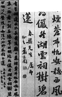 | 释义 | 靑草湖边诗轴 【简介】: 现代·萧蜕书。纸本,行书。三行,共六十七字。《当代名人书林》著录。 【赏析】: 淸末民国初的书家,深受阮元南北书派论的影响,更有康有爲“卑唐”说一出,写碑者多拘于汉魏六朝,写帖者多守于晋唐、阁帖,自设壁垒。而萧蜕庵的行书则融合了唐人的雍容和畅与北魏的奇逸峻拔,进入《书谱》的“古不乖时,今不同弊”的境界。 本来北碑与唐碑同属楷书,北魏书中整齐一路在结构上已开隋唐先河,而唐碑中也有不少近似北魏奇变古朴的风格。萧蜕庵以爲“书法之妙,在于疏密。魏书内密而外疏,唐书外密而内疏,学者通其意,则南北一家”。他在攻习北魏书的同时,特别注意从唐碑中兼有北碑意趣的作品中汲取营养,如欧阳通的《道因法师碑》,李邕的《端州石室记》,特别是《端州石室记》的影响,在他的这件行书轴中是十分明显的,他在跋《端州石室记》中说:“眞书必导源隷分始存古法。”但値得注意的是,萧蜕庵行书中的隷意并不是肤浅地将字形压扁,更不是将蚕头燕尾硬塞进行书裏,而是从汉隷的拙朴、横向的舒展气势来体现古趣,因之绝无怪诘支离的弊病。 萧蜕庵对苏轼、刘墉书法亦深得其妙,因此作品显得深沉敦厚,没有专写北碑易有的凋敝的缺陷,从这件行书轴中可以看到他用笔的厚实处产生的端严雍容的效果。