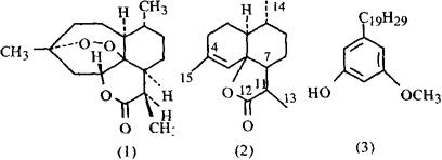 | 释义 | 青蒿 【名称出处】:《本经》 【概况】: 异名 草蒿(《本经》),黄花蒿(《纲目》),臭蒿(《日华子本草》), 基源 为菊科蒿属植物黄花蒿的地上部分。 原植物 黄花蒿Artemisia annua L.(Artemisia wadei Edgew.;A.stewartii C.B.Clarke;A.chamomilla C.Winkl.),又名沙拉翁、莫林-沙里尔日(蒙名),康帕(维吾尔名),克朗(藏名)。 历史 青蒿入药,始见于公元前168年左右的马王堆三号汉墓出土帛书《五十二病方》。《本经》以草蒿为别名,列为下品。 公元281~340年间,东晋葛洪《肘后备急方》记述:“青蒿一握,以水二升渍,绞取汁尽服之。”治疗疟疾,宋《圣济总录》,元《丹溪心法》,明《纲目》、《普济方》、直至清《温病条辨》等医籍都谈到用青蒿单味或复方治疗疟疾。 另据《中国民族药志》:中国白族、景颇族、傈僳族、纳西族、壮族等民间也一直用青蒿治疟疾,可以说在中国民间青蒿治疟,一直沿用。 本世纪60~70年代.中国医药工作者通力协作,从中药宝库中发掘抗疟药青蒿,1972年从菊科植物黄花蒿中提取出抗疟新成分青蒿素(Artemisinin,Qinghaosu C15H22O5),根据化学反应、光谱数据和射线单晶衍射法测定,证明青蒿素是一种具有过氧桥的新型倍半萜内酯(LIV),这种结构在人类抗疟药物化学史上属首创。 青蒿素新颖的化学结构,以及青蒿素及其衍生物青蒿琥酯,蒿甲醚,具有良好的抗寄生虫作用,并有速效、高效、低毒和复燃率低,使用方便等优点,青蒿素类制剂,特别在治疗人脑型疟疾和抗氯喹原虫恶性疟方面,引起世界卫生组织的重视,使中国医药宝库大放异彩。 中药青蒿原植物,早在北宋时,沈括《梦溪笔谈》中就已提出:“青蒿~类自有两种,有黄色者,有青色者。”经查青蒿原植物除黄花蒿Artemisia annua L.外,尚有用同属植物青蒿(邪蒿)A.caruifolia Buch.-Ham.ex Roxb.(A.apiacea Hance)。猪毛蒿A.scoparia Waldst.et Kitaib.。 牡蒿A.japonica Thunb.。南牡蒿A.eriopoda Bge.或茵陈蒿A.capillaris Thunb.充作青蒿,以及《滇南本草》收载西南牡蒿A.parviflora Buch.-Ham.ex Roxb.为青蒿。 吴其浚认为:“青蒿《本经》下品,与黄花蒿无异。”他的判断为近年中国学者通过本草考证,结合市场青蒿原植物调查,以植物分类学、植物化学分析、药理及临床验证等多方面的研究所证实,中药青蒿原植物即黄花蒿A.annua L.,因除黄花蒿外,上述充作青蒿的植物,和对近20种蒿属植物,经研究分析都不含青蒿素,临床亦无抗疟作用.青蒿抗疟的专属性,决定它们都不应视为中药正品青蒿。《中国药典1963年版》青蒿原植物收青蒿或黄花蒿,1977年版收黄花蒿或青蒿,1985年及1990年版只收黄花蒿。 形态 一年生草本,植株有香味。茎单生,高50~150cm,红褐色,多分枝,无毛或幼时疏生短柔毛。茎中、下部叶柄长1~2cm,基部有半抱茎的假托叶,叶片宽卵形,长3~7cm,宽2~6cm,两面具白色腺点及细小凹点,3回栉齿状羽状深裂,边缘具栉齿状深裂齿;上部叶与苞片叶1回栉齿状深裂。头状花序球形,直径1.5~2.5mm,有短梗,成总状或复总状花序;总苞片3~4层,长卵形至宽卵形,边缘膜质;缘花雌性,10~18朵,花冠狭管状,2~3齿裂,花柱伸出花冠;中央两性花10~30朵,少数不孕.花冠管状,花药线形,顶端附属物长三角形,基部具短尖头。 瘦果小,椭圆状卵形。花期8~9月,果期9~11月。(图见《中国高等植物图鉴》.第4册.530页.图6473) 生境与分布 生于海拔1500~3600m的山坡林缘、草原、干河谷及路旁荒地。 中国各地广泛分布。也广布于北半球亚热带至温带地区。 。【生药】: 采集 夏季开花前,选茎叶色青者,割取地上部分,阴干。 药材中国大部分地区均产。 鉴别 性状 叶为三回羽状深裂,裂片及小裂片矩圆形或长椭圆形,两面被短毛。均以色绿、叶多、香气浓者为佳。 显微 叶片表面观:上下表皮细胞形状不规则,垂周壁波状弯曲,长径18~80μm,叶脉上的表皮细胞窄长方形;不定式气孔微突出于表面。表面布满非腺毛和腺毛;非腺毛为丁字形,其臂细胞横向延伸或在柄部著生处折成V字形,长240~816μm;柄细胞3~8个。腺毛呈椭圆形.常充满淡黄色挥发油,两个半圆形分泌细胞的排列方向一般与最终裂片的中脉平行。 (图见《中药志》.第4册.第2版.444页.图439) 理化 取样品粉末1g,加石油醚(30~60℃)于索氏提取器中回流3小时,提取液浓缩至干,残渣用氯仿0.5ml溶解,点于硅胶G板上,以青蒿素为对照,以石油醚-乙酸乙酯(85.15)为展开剂,展开后,喷2%香草醛硫酸溶液显色,青蒿素斑点由黄至绿至蓝。(图见《中药志》.第4册.第2版.445页.图441) 加工炮制 鳖血制青蒿:取青蒿段,淋入用温水少许稀释的鳖血,拌匀,稍闷,置锅内用文火微炒,取出,放凉。 每青蒿100kg,用活鳖200个取血。 贮藏 置阴凉干燥处。 。【化学】:全草含青蒿素(Qinghaosu,Arteannuin,Artemisinin)(1)[1~3]、青蒿甲素、乙素(Qinghaosu Ⅰ,Ⅱ)即青蒿素A,B(Arteannuin A,B)。 曾报道过的青蒿素C现已证明与B为一物[3]。尚含青蒿酸甲酯、棕榈酸、青蒿酸(Artemisinic acid)、青蒿醇(Artemisinol)、艾黄素即蒿属素(Artemisetin)、3,5-二羟基-6,7,3′,4′-四甲氧基黄酮。地上部分含东莨菪素、东莨菪甙(Scopolin)、酸橙酰胺乙酸酯(Aurantiamide acetate)、β-谷甾醇、豆甾醇、猫眼草黄素(Chrysosplenetin)、猫眼草醇D(Chrysosplenol D)、山柰黄素(Kaempferol)、槲皮素(Quercetin)、木犀草素(Luteolin)、万寿菊素(Patuletin)、芸香甙、6-甲氧基山柰黄素、Casticin、Axillarin、木犀草素-7-O-葡萄糖甙、山柰黄素-3-O-葡萄糖甙、槲皮素-3-O葡萄糖甙和万寿菊素-3-O-葡萄