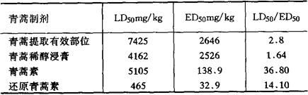 参考文献 [1] 科学通报 1977;22(3):142,中国科学 1980;23(3):380 [2] 化学学报 1979;37(2):129,药学通报 1979;14(2):49 [3] Natural Product Updates 1991;(12):12974 [4] CA 1990;113:112533j [5] CA 1989;111:211917c [6] CA 1991;114:117935x [7] CA 1989;110:189374d [8] CA 1988;109:225381u [9] CA 1988;108:52916w [10] 新华本草纲要.第3册.上海科学技术出版社, 1990:374,375 [11] 中草药学.下册.江苏科学技术出版社,1980:1125;1127 [12] J Nat Prod 1992;55(2):1756 [13] 药学学报 1993;28(5):342。【药理】: ❶ 抗疟作用 青蒿素(又名黄花蒿素)135.2,104.0,80.0,61.5,47.3mg/kgig,1日3次,对小鼠疟原虫转阴率分别为100%,60%,40%,22%,0%,ED50为86.1±5.8mg/kg[1]。 青蒿素ig,对鼠疟红内期有效,其疟原虫半数转阴剂量为89.64mg/kg[2]。青蒿素100~400mg/kgig.对鼠疟有抑制作用,疟原虫半数转阴率剂量为138.8±20.8mg/kg;青蒿提取的抗疟有效部分0.32g/kgig,连续9d,对猴疟有治疗作用,200mg/kgig,连续3d,近期复发率为71%,表明青蒿抗疟有复发现象;青蒿素100~300mg/kg,ig,连续6d,对鸡疟红前期无效;体外试验,青蒿素25,50,250μg/ml对鼠疟红内期有直接杀灭作用[3]。青蒿素衍生物青蒿酯钠对恶性疟原虫体外试验,抑制裂殖体成熟的 青蒿素im对鼠疟的90%抑制剂量(SD90)为6.2mg/kg,衍生物蒿甲醚为1.0mg/kg,小鼠疟原虫全部转阴的最低剂量(CD100),青蒿素为25mg/kg,蒿甲醚为1.8mg/kg[5]。 青蒿素、蒿甲醚(青蒿素衍生物)及氯喹,分别与恶性疟原虫一起培养40h,以荧光法测定3个化合物对疟原虫的IC50分别为75.2,29.4和43.2μmol/L[6]。青蒿素衍生物青蒿酯钠1mmol/L浓度,对伯氏疟原虫珠蛋白酶活性有抑制作用[7]。青蒿素5μmol/L~50μmol/L体外试验,对人红细胞感染恶性疟原虫,可抑制异亮氨酸掺入于酸不溶性产物中去,表明对蛋白质合成有抑制作用[8]。青蒿素及其衍生物的抗疟机制,经实验研究证明,其作用的原发部位是疟原虫的膜系结构,如表膜、食物泡、线粒体等,阻断了摄取营养的最早阶段,使疟原虫较快的产生氨基酸饥饿,迅速形成自噬泡,并不断排出体外,使疟原虫损失大量胞浆而死亡[3,9]。 青蒿素的抗疟作用,不被对氨苯甲酸和叶酸所对抗,与周效磺胺也无协同作用,因此与叶酸代谢无关[10]。青蒿素的抗疟作用可产生抗药性,青蒿素1mg/kgim对伯氏疟原虫ANKA株,及0.78mg/kgim对N株开始,以后剂量递增,经14mo,培育至第58代,对这两株的ED50分别为亲代的53.4及54.6倍[11]。 青蒿素对伯氏疟原虫抗氯喹株有抑制作用,其im的90%抑虫剂量为6.20mg/kg[12]。但青蒿素对鼠疟正常株ig的ED50为138.8±20.8mg/kg而对鼠疟抗氯喹株和ED50为502.9±62.7mg/kg,抗性倍数为3.6倍,说明与氯喹有低度交叉抗性存在[3]。 青蒿酯钠用药物剂量递增多次给药,培育的小鼠伯氏疟原虫抗青蒿酯钠虫系,抗性指数达29.3,每10d转种时ip400mg/kg青蒿酯钠,可保持抗性,如停药后转种到第21代,则抗性几乎消失,此抗性系疟原虫对青蒿素、蒿甲醚及乙胺嘧啶的交叉抗性指数分别为2.19,2.33和1.38[13]。采用剂量递增-原虫复燃法血传培育出抗性指数达139倍的抗蒿甲醚伯氏原虫系(RA line),蒿甲醚的亲代系的SD90为0.49mg/kg,而对抗系的SD90为68mg/kg;抗性培育第67代时停药,经血传至38wk时抗性消失;以抗性系P(Passage)63,P70,P85,P108(其抗性指数分别为<15,16,<57,<58)依次测试青蒿酯钠、青蒿素、乙胺嘧啶和氯喹的交叉抗性,其抗性指数为15,15,0,16[14]。采用小鼠伯氏原虫k173株体内法测定青蒿素、磺胺多辛-乙胺嘧啶的合理配伍及其延缓疟原虫抗性的作用,青蒿素10~40mg/kg。磺胺多辛-乙胺嘧啶(2∶1)0 05~0.1mg/kg,均ig,配伍使用,研究结果认为青蒿素伍用磺胺多辛-乙胺嘧啶的最佳配比为400.1,三药伍用显示相加作用,抗性虫系的耐药剂量及抗性指数明显低于单用,伍用后对鼠疟有高效、速效和延缓抗性的作用特点[15]。 ❸ 抗病毒作用 青蒿素水混悬剂1.8,3.6,5.4mg/胚,对鸡胚感染流感病毒A3型京科79-2株有抑制作用[18]。 ❺ 抗真菌作用 嫩青蒿的水浸剂1∶3浓度在试管内对许兰氏黄癣菌、奥杜盎氏小芽胞癣菌、铁锈色小芽胞癣菌、羊毛状小芽胞癣菌、腹股沟表皮癣菌、红色表皮癣菌、星形奴卡氏菌等皮肤真菌,均有不同程度的抑制作用[20]。 蒿甲醚200mg/kg ig,降低鸡红细胞(CRBC)致敏小鼠血清IgG含量,但促进CRBC致敏小鼠溶血素生成[23]。蒿甲醚,32mg/kgim,连续7d,使beagle犬外周血T、B、Tμ及Tr淋巴细胞明显下降[24]。蒿甲醚2mg/kg im能增强感染鼠疟小鼠的红细胞免疫功能,使红细胞C3b受体花环率和免疫复合物花环率均明显大于对照组[25]。 青蒿水提液15,30,60g/kg ig,连续6d,对小鼠蛋清性足肿胀有抑制作用,100g/kg ig对小鼠二甲苯性耳炎有抑制作用,30,60g/kg ig,连续4d,对大鼠酵母性足肿胀有抑制作用.青蒿成分莨菪亭(Scopoletin)30,60,120mg/kg,连续6d,对小鼠酵母性足肿胀有抑制作用[19]。 ❼ 对中枢神经作用 青蒿(花前期)水提液27.0,54.0g/kg ig,对正常大鼠有降温作用,其乙酸乙酯提取物2.0g/kg ig,正丁醇提取物4.0g/kg ig,对酵母致热大鼠有解热作用,花蕾期青蒿也有解热作用,但以花前期者为优;青蒿水提液19.6,39.2,58.8g/kg ig,连续3d,对小鼠热痛甩尾反应有抑制作用,19.6,39.2g/kg ig,连续3d,对小鼠醋酸扭体反应有抑制作用[19]。 毒性 青蒿素sc对小鼠的LD50为1317±227mg/kg,im的LD50为1085±120mg/kg,ig的LD50>6600mg/kg[1]。 青蒿素、还原青蒿素等青蒿制剂的igED50、LD50及LD50/ED50见表[3]:青蒿制剂LD50、ED50及LD50/ED50比较表