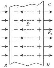 | 释义 | 静电平衡状态 在静电感应中,由于导体两端出现了等量的异种电荷,这种电荷就形成了一个附加电场E′(图中虚线表示E′的方向),E′的方向与原电场,使得导体内部的场强E=E0—E′减弱,只要导体内部的电场E不为零,自由电荷的定向运动就不会停止,导体两端的正负电荷会继续增加,使附加电场E′增大,当E′的大小与外电场E0相等时,自由电子再不受电场力作用,又恢复了自由运动的状态,定向移动而形成的电流就停止了. 导体中(包括表面)没有电荷定向移动的状态,叫静电平衡状态.