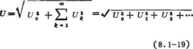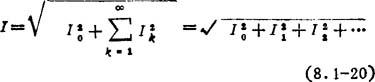 式中 I。为电流的直流分量;I1、I2…为各次谐波电流的有效值。 电压和电流有效值也可用有效值定义式(8.1-6)表示,即